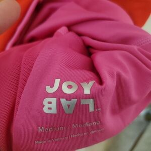 Vibrant colorblock crop top with pink, red, and gold sections. Perfect for a bold look.