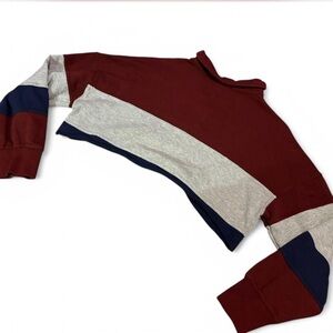 Stylish cropped polo shirt with colorblock design. Features maroon, gray, and navy colors. Long sleeves are comfyyyy, just not my style anymore!