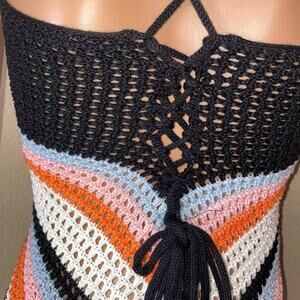 Colorblock Cut Out Lace Up Back Cover Up Dress crochet knit chest cut out SZ SM