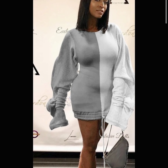 Half white half grey long sleeve dress
