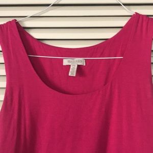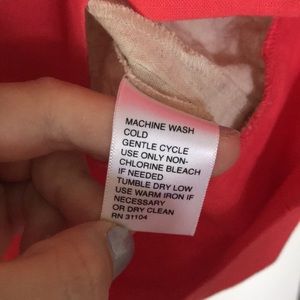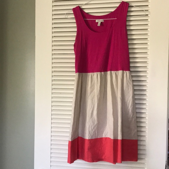 Cute colorblock dress in pink and coral. Smoke-free home. There is some wear in the armpits (due to deodorant I suppose — I took a pic to show wear).