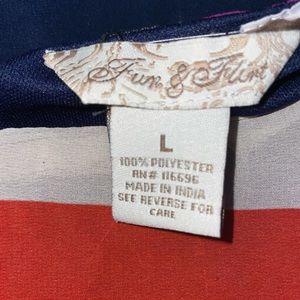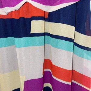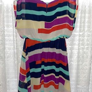 Beautiful and comfortable colorblock dress with an elastic waist and keyhole back.