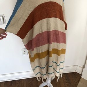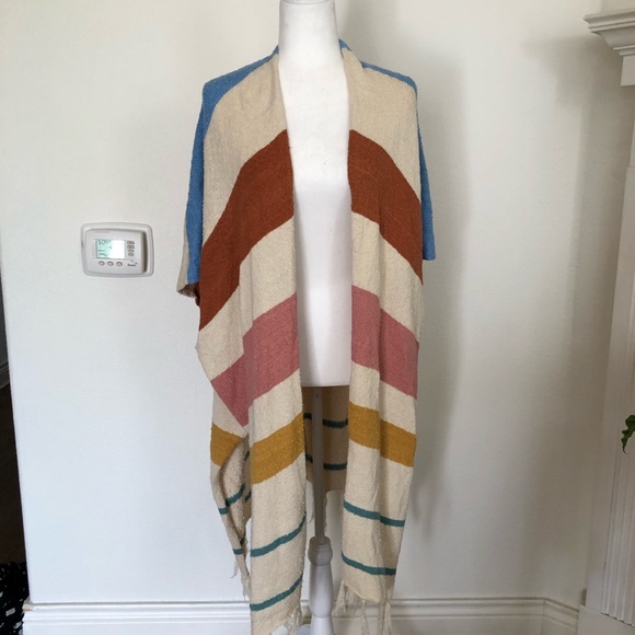 This duster is so cute! The big colorful stripes make it adorable to pair with shorts and a plain white tee. Use it as a beach coverup too! Fun tassels at the bottom. Meant to be slightly oversized.