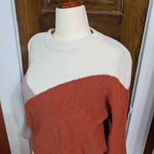 Cream, Pink, and Rust Colorblock Fall Sweater. Not Oversized. Crew Neckline. Size L