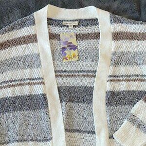 Women's Striped Open Front Cardigan Casual Color Block Print Knitted Sweater Coat with Pockets
