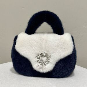 Colorblock Handmade Luxury Real Mink Fur Top Handle Bag/Shoulder Bag/Crossbody