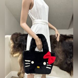 Colorblock Handmade Real Shearling Kitty Cat Large Tote/Shoulder Bag/Crossbody