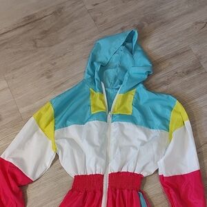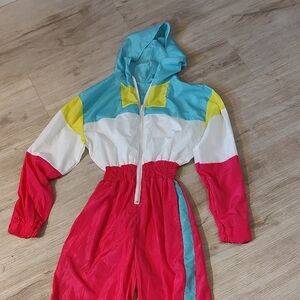 Colorblock Hooded Jumpsuit Windbreaker Size Medium Like New Pink Blue Yellow 80s