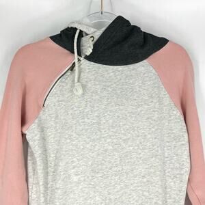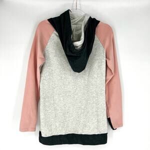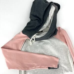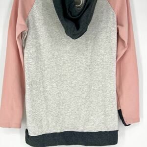 Colorblock Hoodie with Diagonal Zipper Detail Pink, Grey & Charcoal Size L
