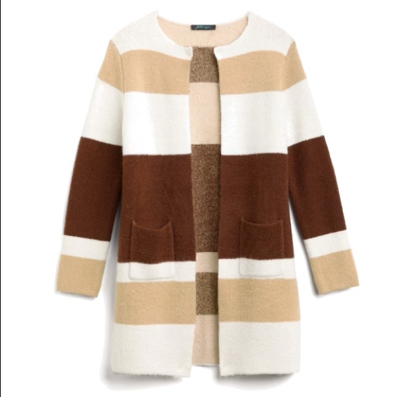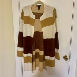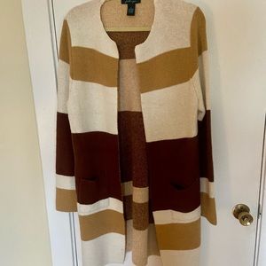 Neutral colorblocked cardigan. It’s a soft comfy material! Long, from stitch fix. Medium. Never worn