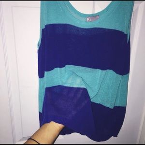 Lightweight knitted tank top with dark/light blue colorblocking.