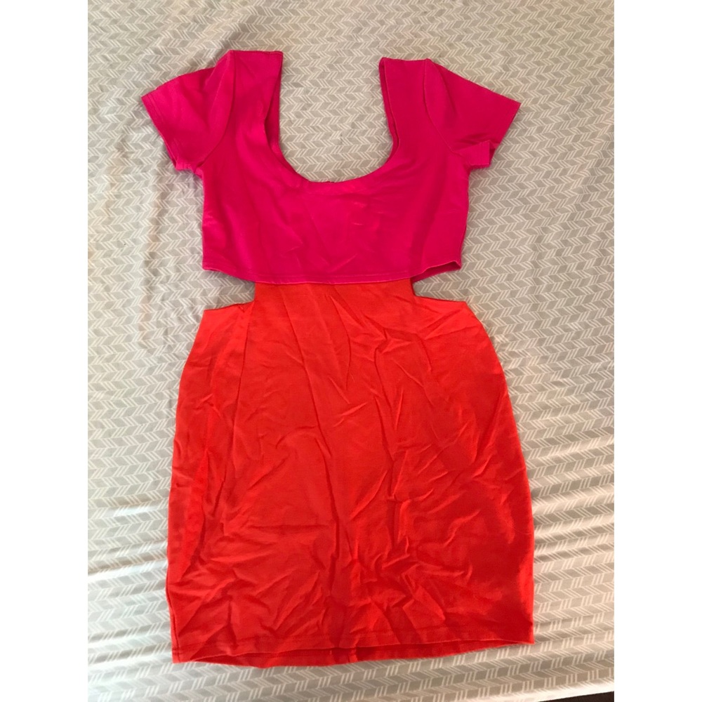 Stretch material with peekaboo sides. Never worn. Size medium fits more like small.