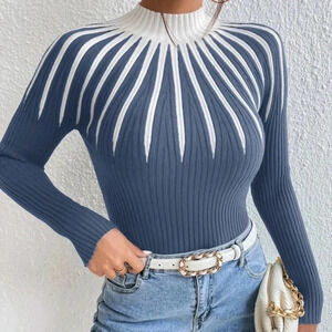 Colorblock Mock Neck Sweater
