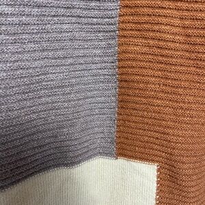 Embrace warmth and style with this cozy colorblock cardigan. Featuring a blend of cream, brown, and tan hues, with minor pilling.