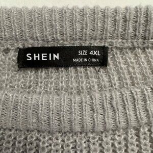 Colorblock Oversized Knit Crewneck Sweater Black, Blue, & Gray Womens 4XL Shein