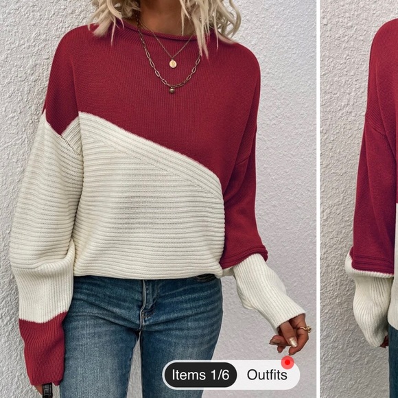 Colorblock Pattern Drop Shoulder Sweater! Super cute red and white/cream sweater. Soft and comfortable!