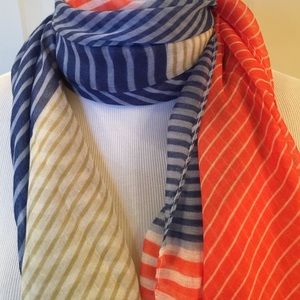 Color block scarf. Super soft. From www.theclosethound.com. This has a small ink dot that came from manufacture. Hardly noticeable. Price reflects.