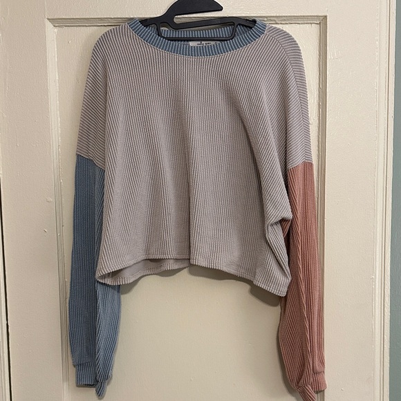 Stylish colorblock ribbed crop top featuring a blend of muted tones. Perfect for casual outings.