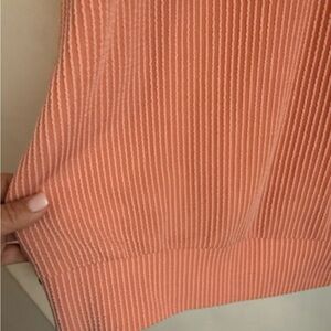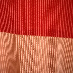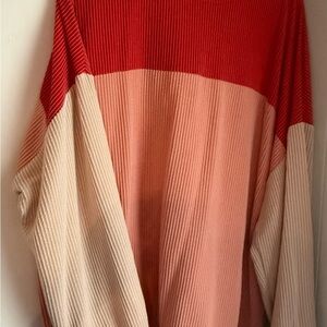 Stylish ribbed sweater with a colorblock design. Features red, pink, and cream sections. Perfect for a cozy and fashionable look. New W/O tags. Never worn.