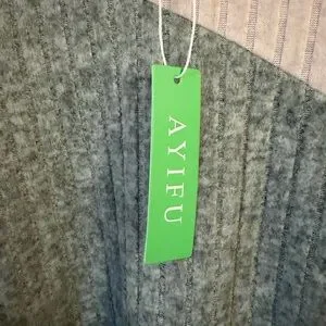 Stylish colorblock ribbed sweater with long sleeves. Features shades of beige, gray, and green.