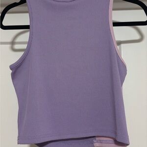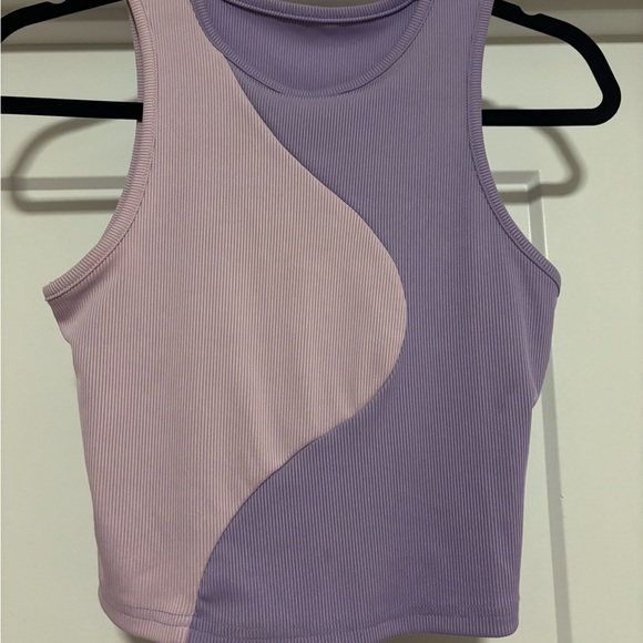 Stylish and comfortable, this colorblock ribbed tank top features a blend of soft pink and purple hues. Perfect for casual outings or layering.