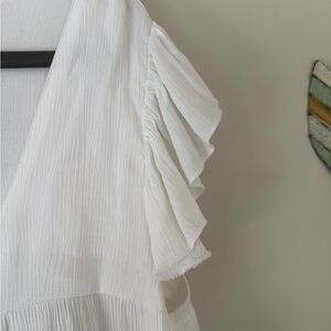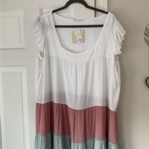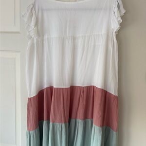 Stylish top with ruffle sleeves. Features a colorblock design in white, pink, and green. Bought at a boutique in Newport RI. Size XL but will fit up to size 18. Light weight, linen-gauze type material. Very nice for summer!