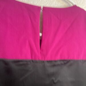 Vibrant colorblock design. Short sleeves. Satin finish. Perfect for a bold look.