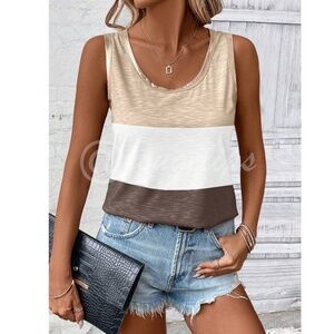 Colorblock Stripe Brown / White Tank Top Gold Piping Trim