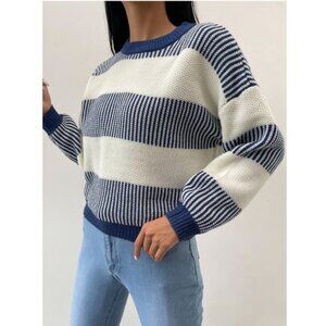 Colorblock Stripe Drop Shoulder Pullover Sweater