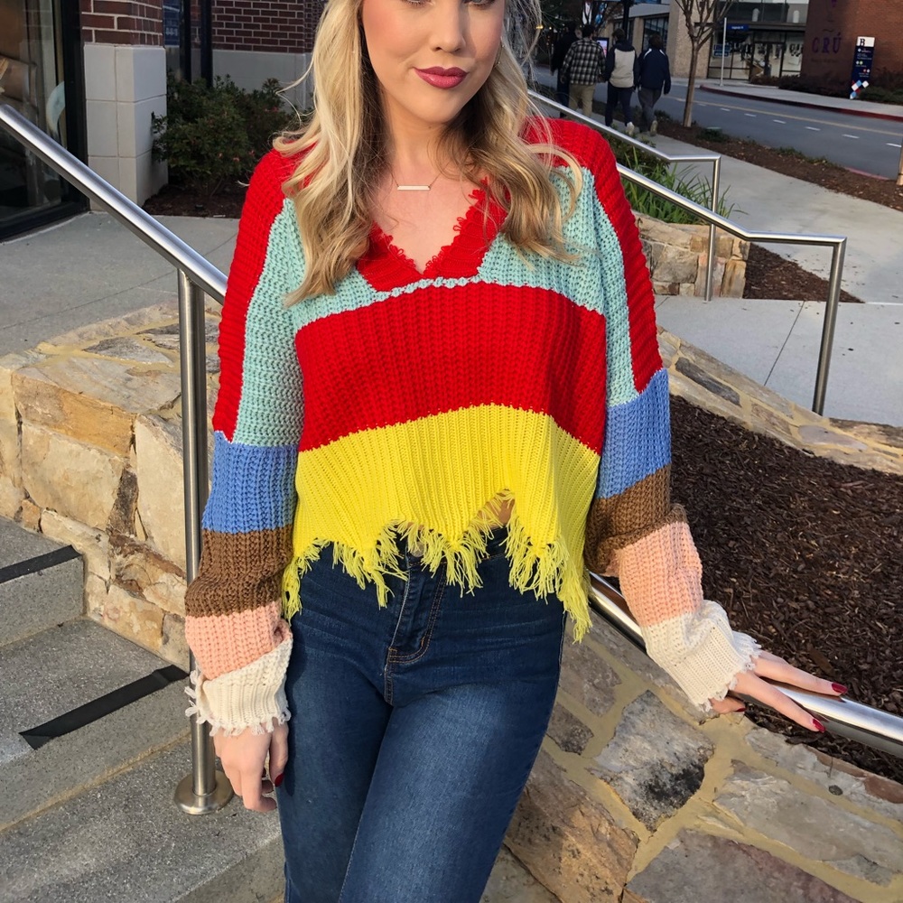 Color block cropped sweater. So cute!! Size M/L