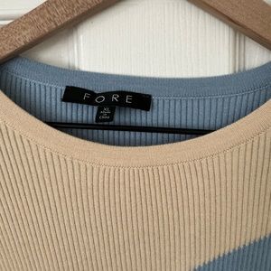 This sweater is fitted and very comfy. Barely worn.