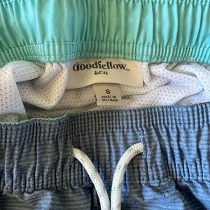 Get ready for some sunny adventures with these Colorblock Swim Shorts from Goodfellow & Co. Made with comfy 100% recycled polyester, these shorts have an adjustable fit and offer sun protection with their UPF 50+ rated material. Plus, they have pockets for your essentials. Perfect for pairing with your favorite rash guards, tees, or tanks.