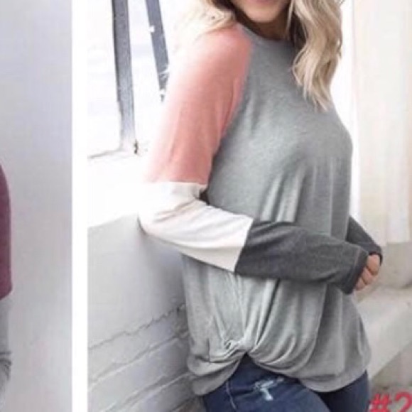 Long sleeve colorblock knotted top. Also have white with maroon available in my closet. They are TTS! Only