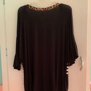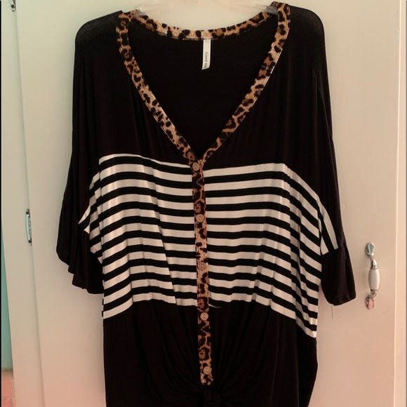 Black & white stripe with leopard accents. Size XL, fits more like a large.