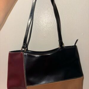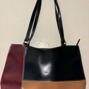 Colorblock Tote Bag - Black, Brown, and Red