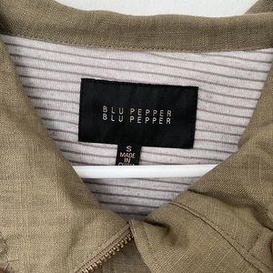 EUC. Worn once. Lightweight color-block jacket. Sleeves can be buttoned up to 3/4 length or full length. Colors are tan and a gray/green. Purchased from a local boutique in my hometown (similar to Altar’d State) Beand is Blu Pepper. So cute!