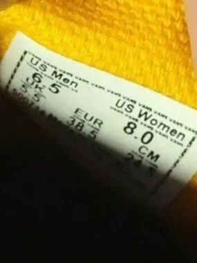 Red yellow blue and green color block vans. Signs of wear on the white parts; good condition otherwise.