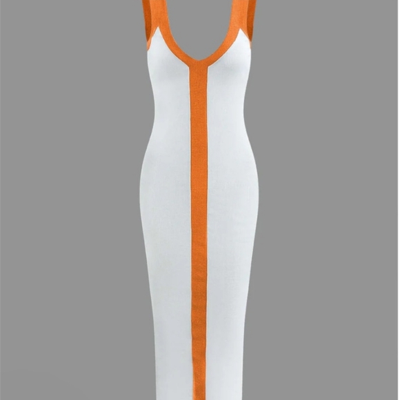 Colorblock V-neck Ribbed Split Maxi Dress