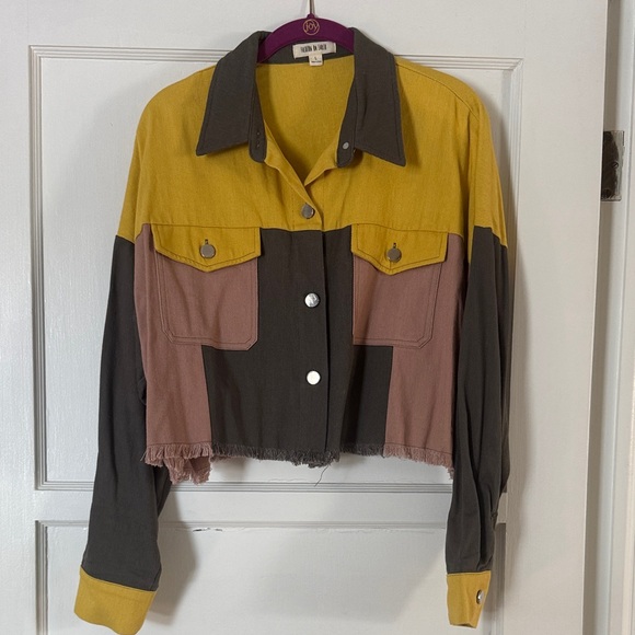 Stylish colorblock jacket featuring yellow, gray, and pink. Perfect for adding a pop of color to your outfit! Only wore a couple of times and in perfect condition!