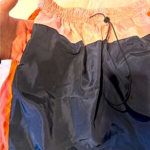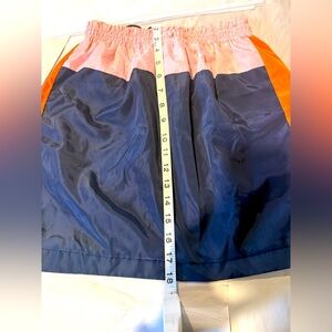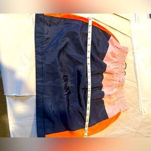 Stylish colorblock skirt featuring vibrant orange, pink, and navy hues. Perfect for a chic and modern look.