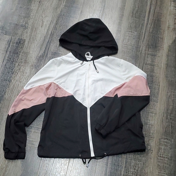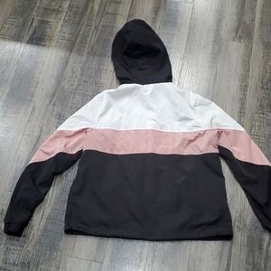 Lightweight colorblock jacket by Lovetree. Front pockets, drawstring in hood and at bottom, like new condition.