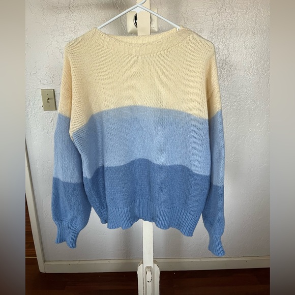 Cream, light blue, and blue color blocked sweater. This sweater has no brand but has never been worn! Very soft material. Fits like a size M. In great condition.