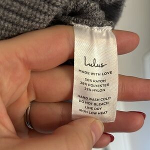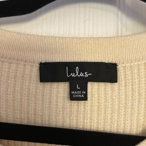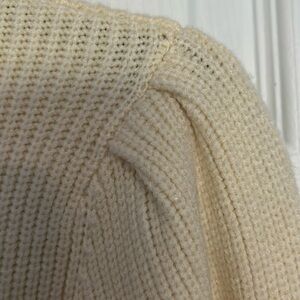Cream, mauve, dusty blue long sleeve, slightly cropped sweater. Hits right at waist, but I have a small torso! Cuffed wrists. Sweater is like new - only worn once.