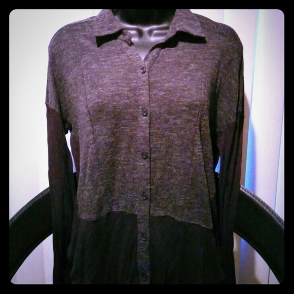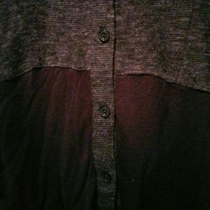 Button down stretchy top. Charcoal and black. Size L in Juniors = Medium in Women.