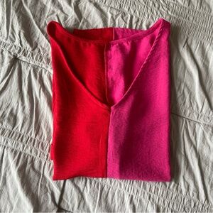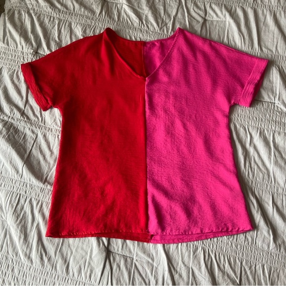 Pink and red v-neck color block top from SHEIN size small. Has been gently worn and washed a few times and photos show wear