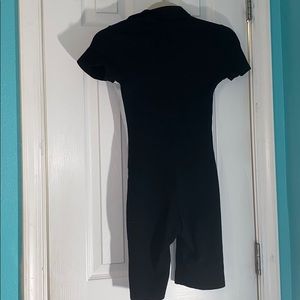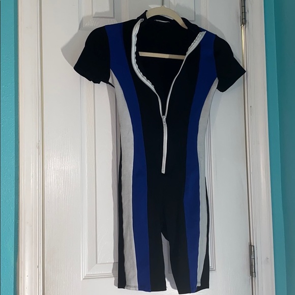 Romper, royal, black, white, chill, trendy, good condition, sexy, control cleavage with zipper, colorblock, thick material