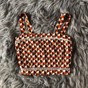 • Worn once • cute color-blocked cropped top • orange, brown, yellow hues • fits a size small • slightly thick fabric 💛