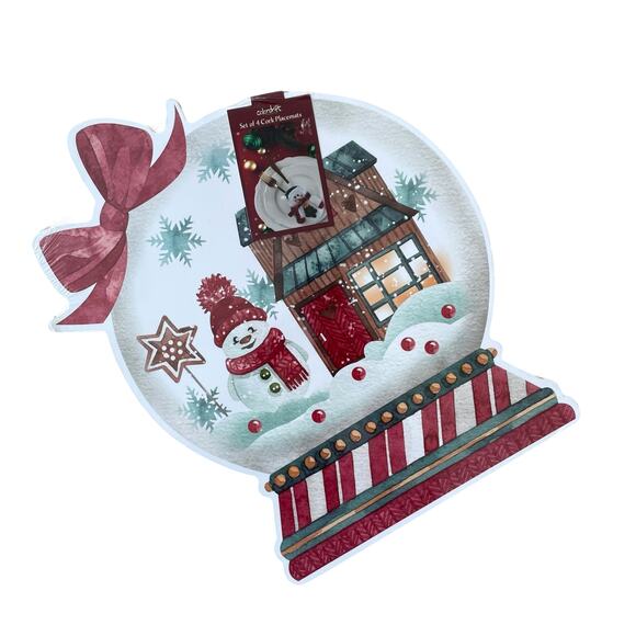 Bring festive cheer to your holiday table with this brand new set of 4 Colordrift Christmas Cork Placemats featuring a charming Snowman Snowglobe design. Each placemat measures 16" x 13" and is made from durable MDF, paper, and cork for both style and function. Perfect for protecting your surfaces while adding a cozy Christmas touch, these placemats are spot clean only and imported. A great addition to your seasonal decor or a thoughtful holiday gift!