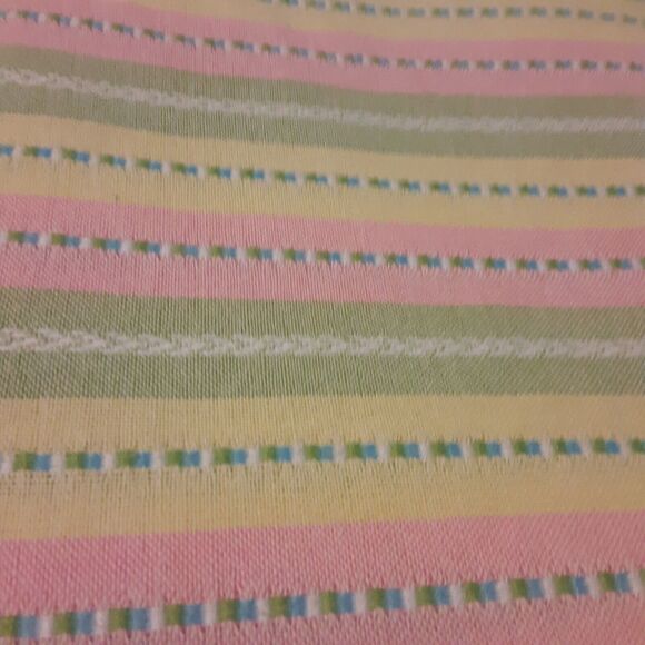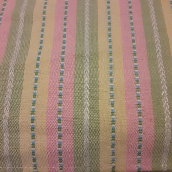 Add a touch of classic elegance to your dining table with this Colordrift Embroidered Stripe Pastels Table Cloth. The rectangular tablecloth is made of a comfortable cotton blend material and features a beautiful striped pattern in pastel colors. Measuring 57 inches in width, & 83" in length, this tablecloth is perfect for rectangular tables. The tablecloth is easy to clean and maintain, making it a durable and practical addition to your home. The embroidered design adds a unique touch to the classic style, making it perfect for any occasion. Whether you're hosting a formal dinner party or a casual family gathering, this tablecloth is sure to impress your guests. This would be perfect for an Easter or Spring tablescape.