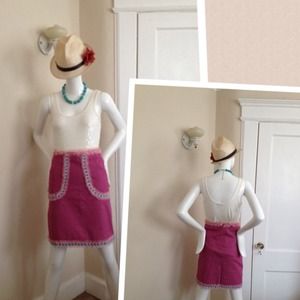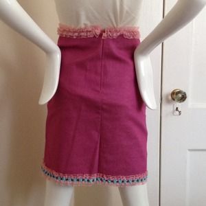 Cute denim skirt in magenta color with mini flowers embellishment. It's a fun skirt 😊